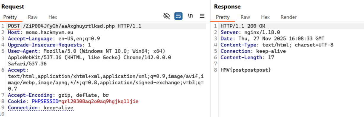 Accessing http://momo.hackmyvm.eu/ZiP004JfyGh/aaAxghuyrtlksd.php returns the following response: