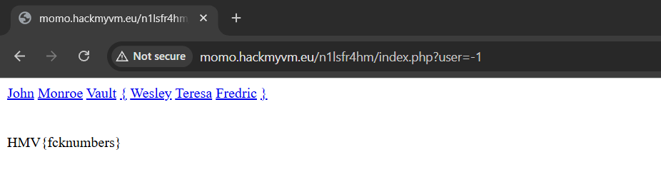 o access them correctly, the URL must be changed to http://momo.hackmyvm.eu/n1lsfr4hm/index.php?user=<num>.