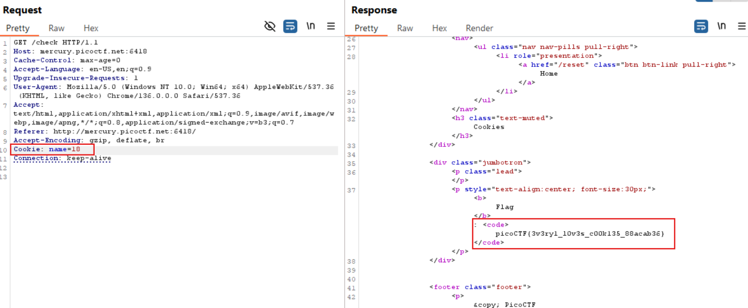 Leveraging this insight, I utilized Burp Suite's Repeater to manually modify the cookie values.