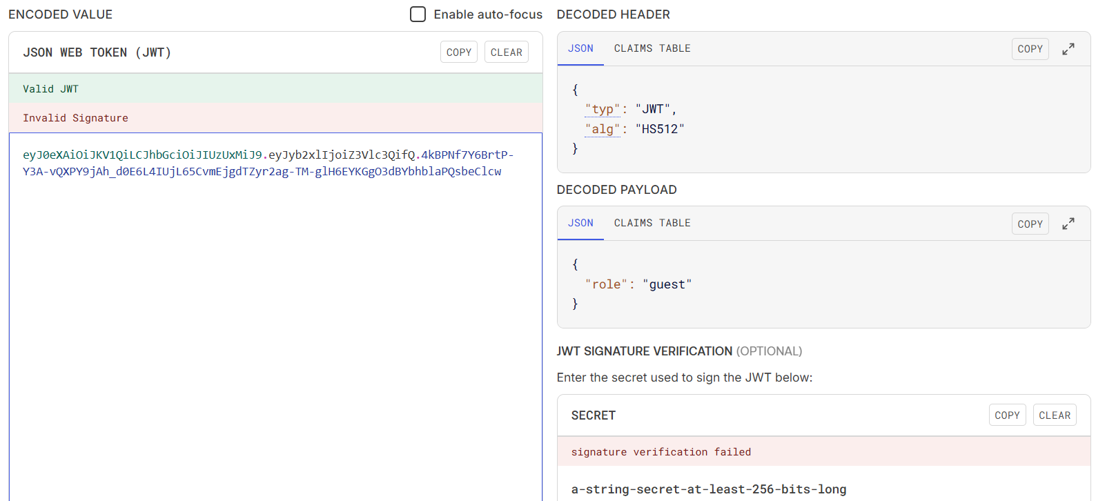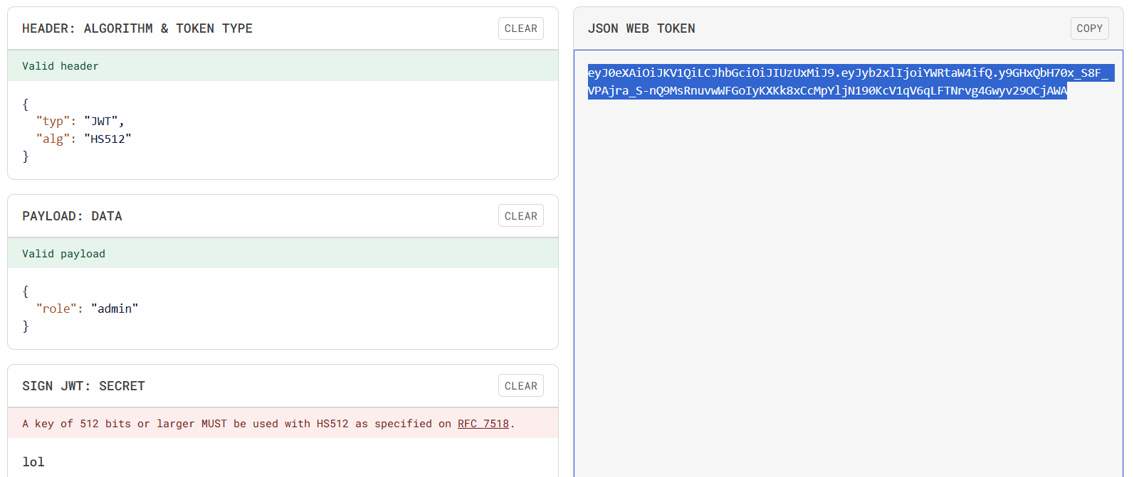 The algorithm used here is HS512.
