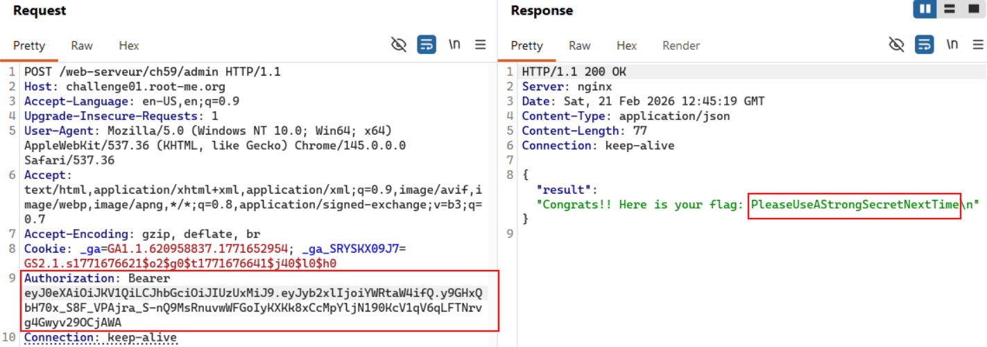 After resending the request, the flag is successfully returned.