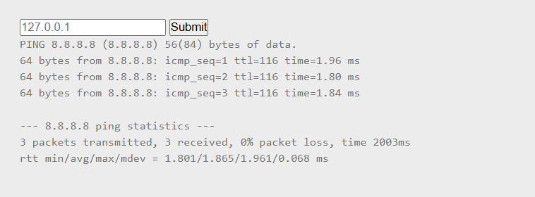 This implies that the backend is likely running a command similar to ping <address> upon submission.